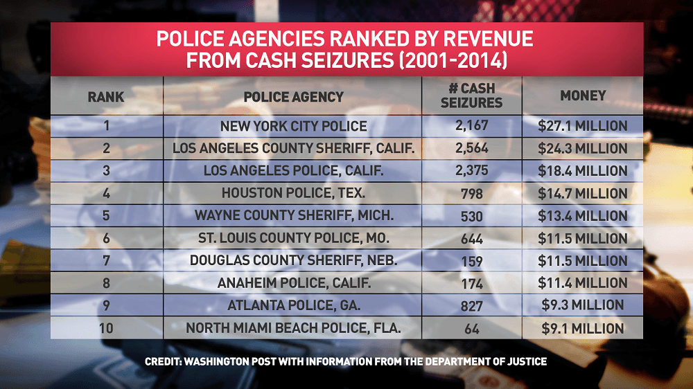 Between 2001 and 2014, according to an investigation made by The Washington Post with data from the Department of Justice, the LAPD received 18.4 million dollars under this program, the NYPD $27 million, and the Sheriff's Department of Los Angeles won 24.3 million dollars.