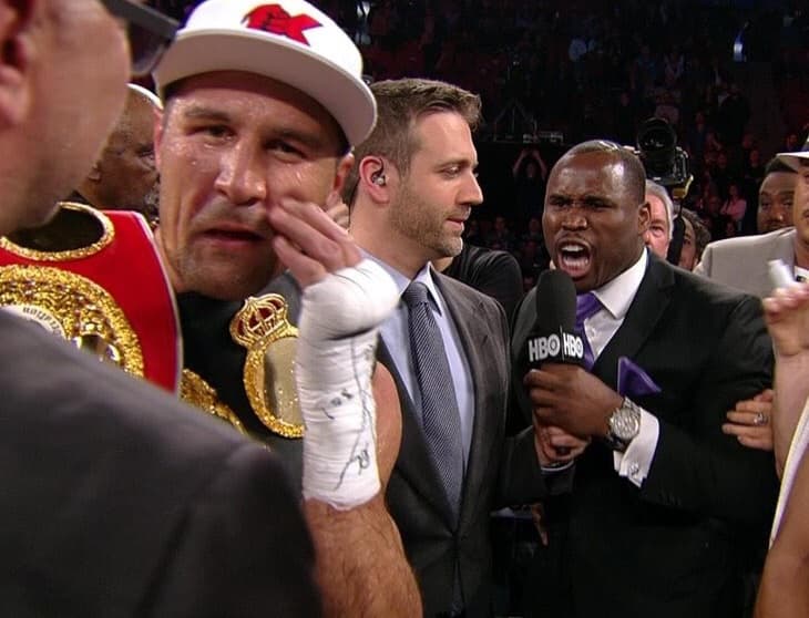 CANADÁ – Sergey Kovalev acabó con Jean Pascal en siete rounds y conservó el título semicompleto. Después y durante la entrevista en televisión Adonis Stevenson, campeón CMB, subió al ring a retar al ruso.