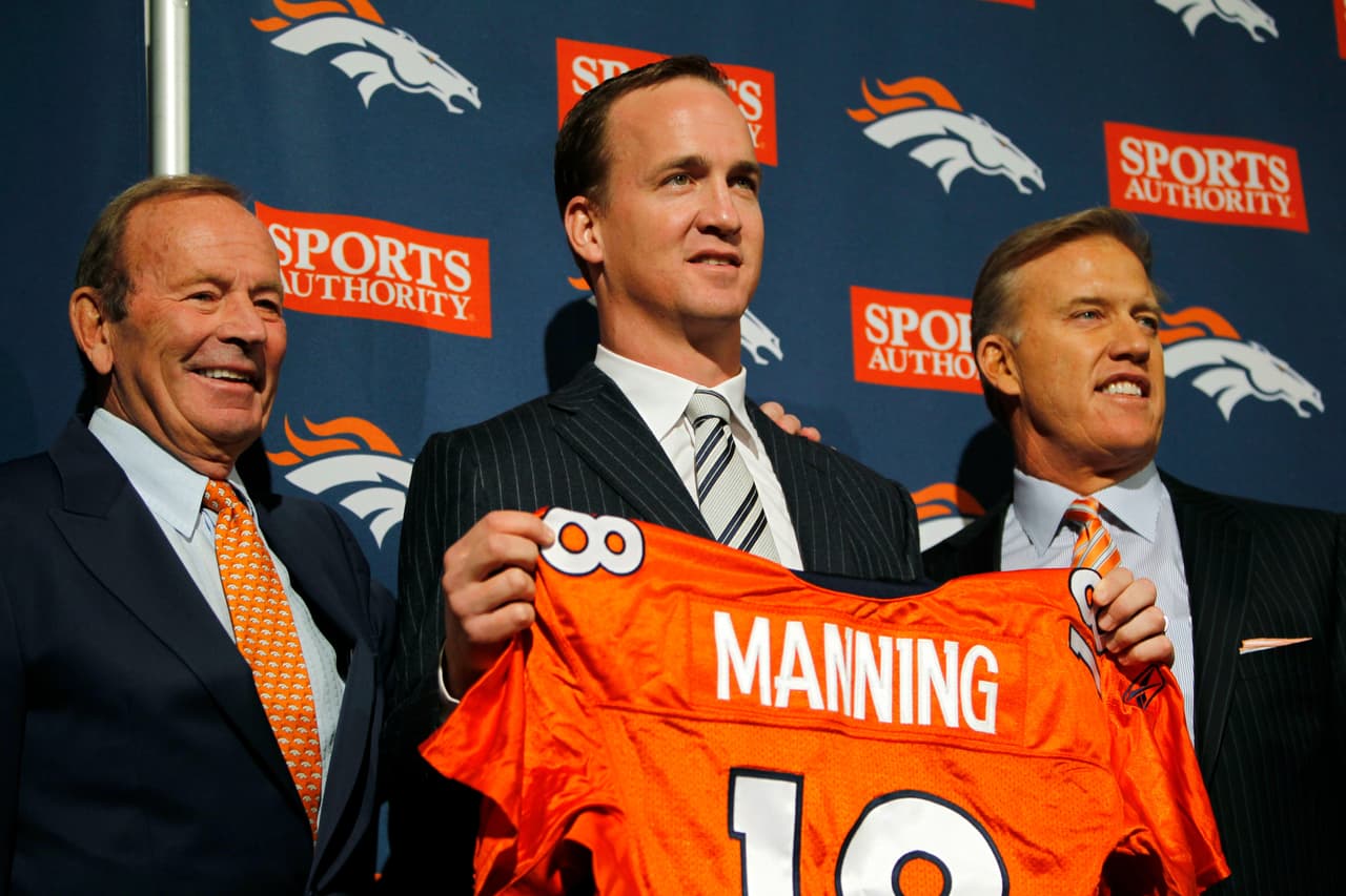 En esa temporada 2012 estuvo disponible en agencia libre nada menos que Peyton Manning. Elway sabía que los Broncos necesitaban arriesgarse para ir lejos, algo que probablemente no conseguirían con Tim Tebow de quarterback. Elway convence a Peyton para continuar su exitosa carrera pero ahora en Denver.