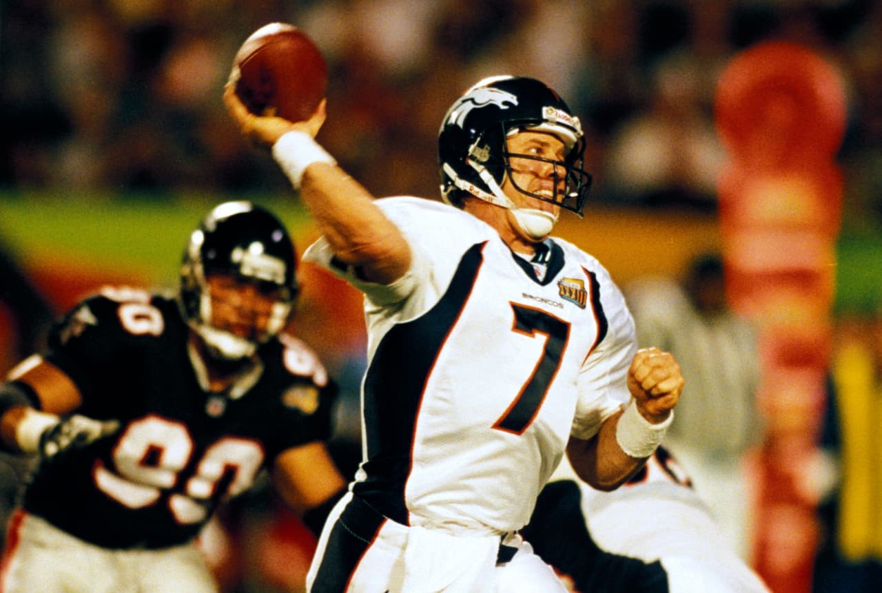 JOHN ELWAY se despidió como campeón en el Super Bowl XXXIII con Denver jugando todo vestido de blanco.
