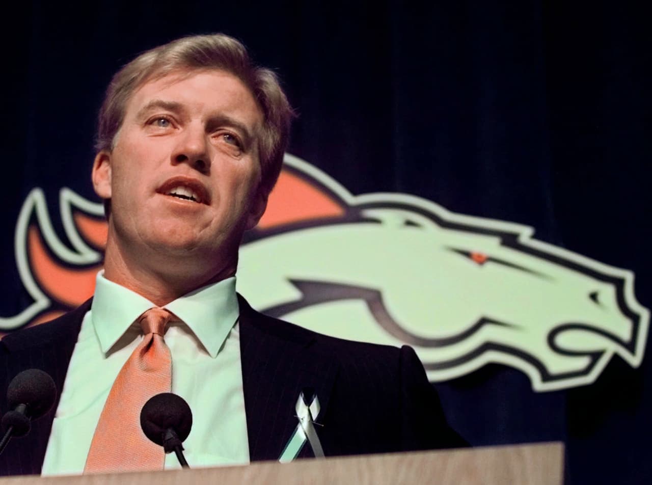 JOHN ELWAY terminó su carrera en Denver como líder de todos los tiempos de la franquicia en victorias, pases lanzados, completos, yardas y touchdowns.