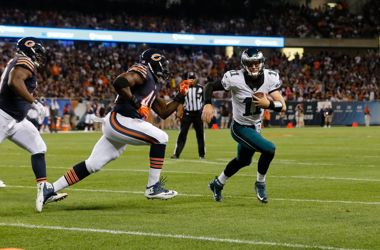 CHICAGO – Una intercepción de Nigel Bradham cerca del final del tercer cuarto, que dejó el balón en primera y gol para Philadelphia, fue clave para que los Eagles se llevarán la victoria en su visita al Soldier Field.