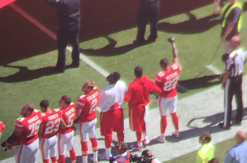 El esquinero de los Kansas City Chiefs hizo el simbólico gesto en apoyo a la protesta que comenzó Colin Kaepernick.