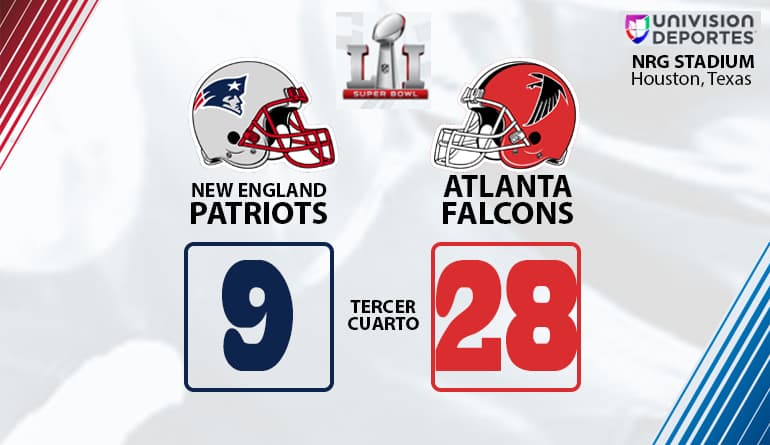 Increíble remontada de los Patriots que empatan el partido. Nunca antes en la historia del Super Bowl un equipo se había recuperado de 21 puntos en contra.