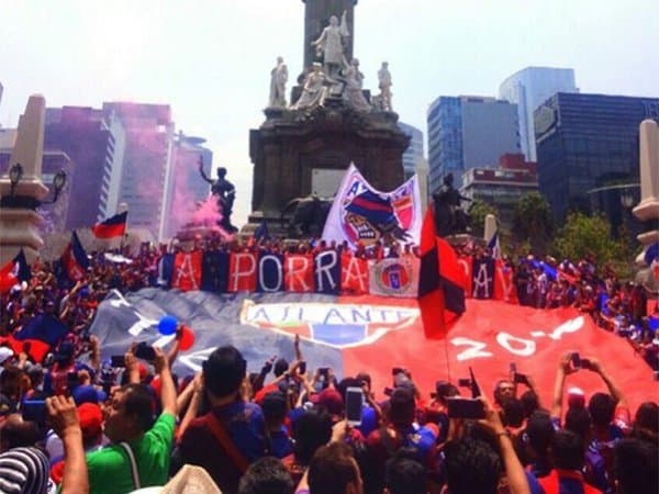 Según reportes de la policía capitalina fueron más de 5 mil aficionados los que llegaron pasado el mediodía al Ángel de la Independencia, punto de reunión que por un par de horas se vistió de azulgrana y participó de los cánticos.