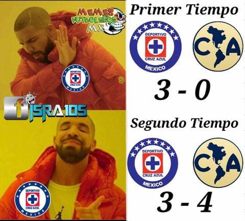 Cruz Azul ganaba 3-0 al medio tiempo contra América, las Águilas reaccionaron y ganaron 3-4. Las burlas no se hicieron esperar para los cementeros.