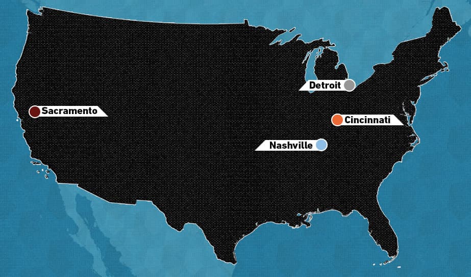 Cincinnati, Detroit, Nashville y Sacramento competirán por las dos próximas plazas de expansión de la liga, que serán anunciadas antes de fin de año.
