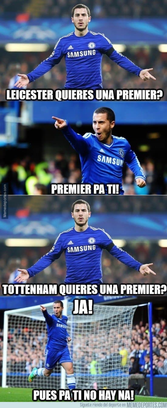 Los nervios atenazaron a los visitantes y el Chelsea buscó el empate. Los Spurs gozaron de una doble ocasión para sentenciar (76), pero Hazard logró el empate definitivo, de un magnífico derechazo a la escuadra (83), que da el título de la Premier al Leicester City para regocijo de los aficionados Blues, enemigos acérrimos de sus vecinos londinenses.