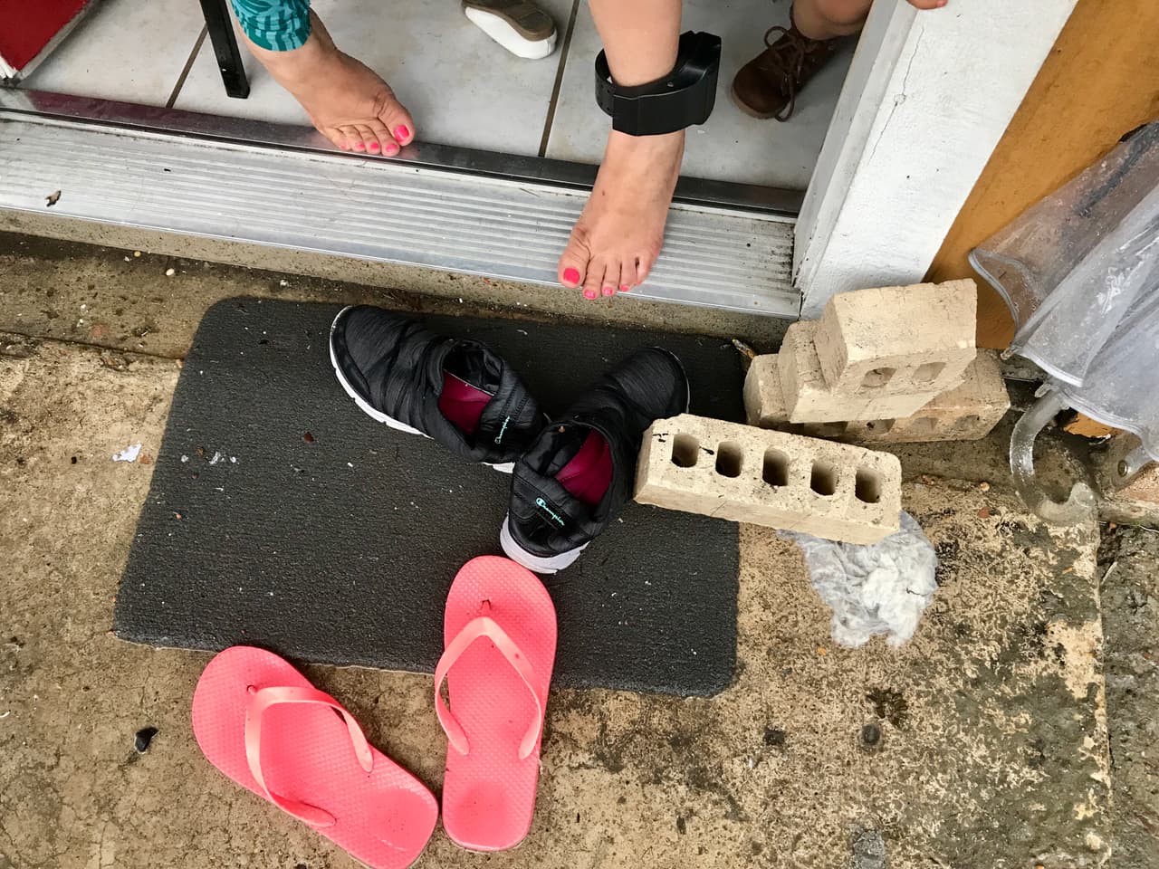 Lo que sonó esa la madrugada era el grillete electrónico que lleva en el tobillo izquierdo para que las autoridades migrantes sepan siempre dónde está. Harvey la dejó sin luz por días, no pudo cargarlo y empezó a escucharse esa voz robótica. Con las horas, el agua de la inundación le dañó la máquina y ahora, ni siquiera se oye el mensaje.