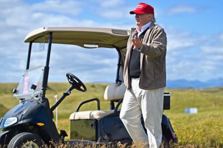 La más reciente pugna del precandidato republicano Donald Trump pasó este martes del escenario político... a un campo de golf.