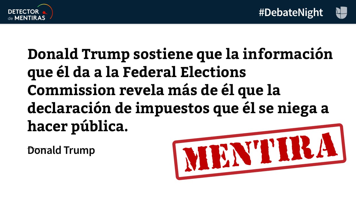 7. Es mentira que la información que Trump le entregó a la Federal Elections Commission revele más de él que las declaraciones de impuestos que no quiere dar a conocer. Más información aquí