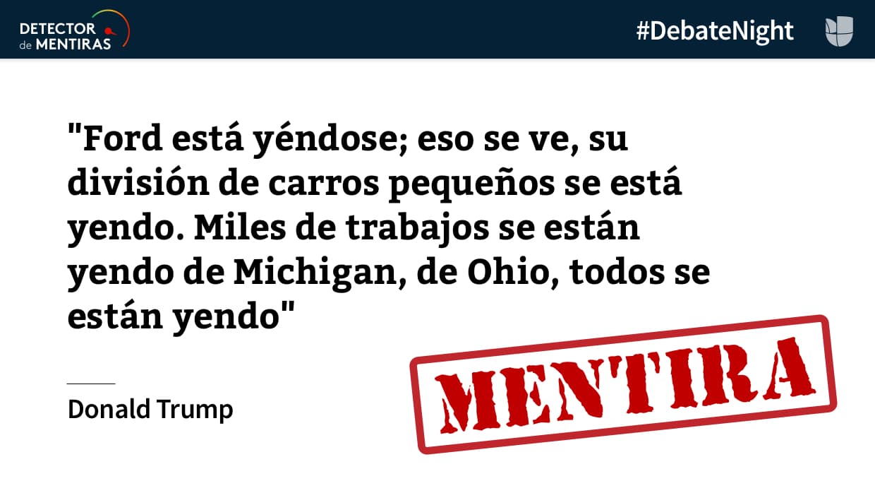 1. Trump mintió cuando acusó a Ford de mandar empleos a México, e incluso el CEO de Ford así lo dijo en público. Aquí la prueba