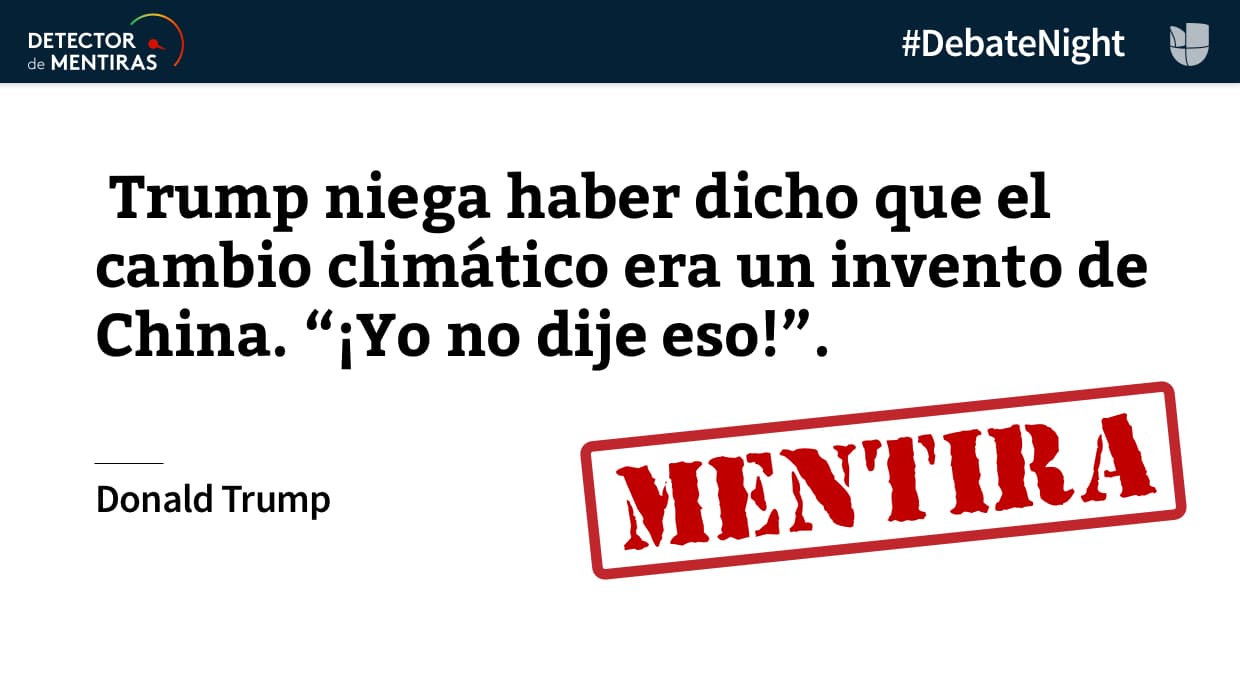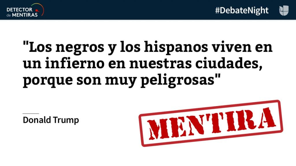 El equipo de fact checking de Univision Noticias también hizo su trabajo: encontró ocho mentiras, todas ellas de Trump, y dos afirmaciones engañosas, una de ellas de Hillary Clinton.