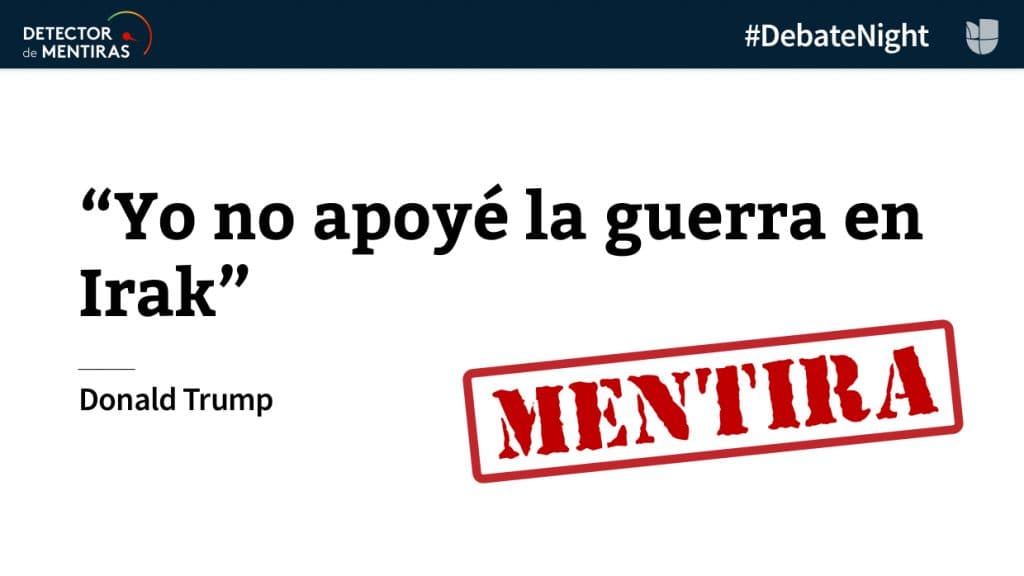 8. Trump dio un tibio apoyo a la guerra de Irak en 2002, pero en el debate de hoy lo negó. Más información aquí