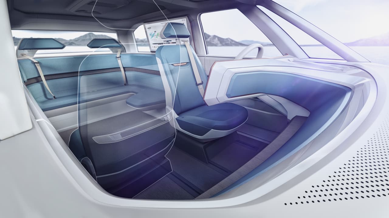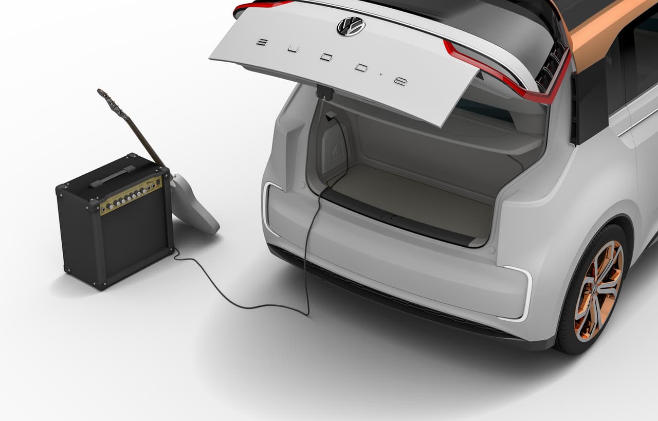 Volkswagen dice que el BUDD-e Concept logra una autonomía de 373 millas con la batería totalmente cargada, semajante a la de vehículos económicos de motor de combustión interna de hoy en día.