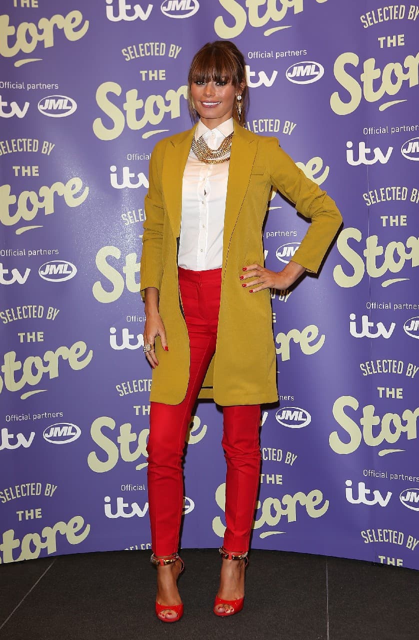 Anímate a usar una blusa con estampado animal print combinada con tus pantalones rojos. Trata de que el color de la parte de arriba no sea tan estridente.