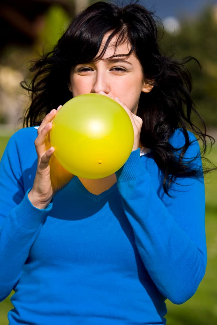 Suponiendo que el gas se encuentra a temperatura constante, el producto entre la presión y el volumen debería entonces ser una constante. En la fotografia, la joven está aumentando la presión y el volumen del globo, a costa de mantener la temperatura del gas interno constante.