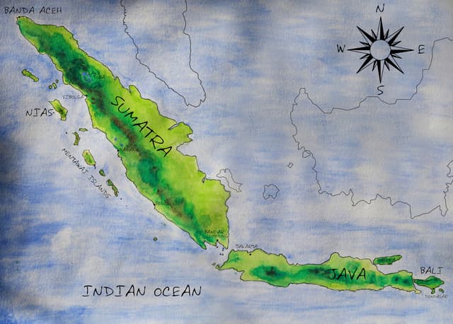 Esta isla asiática de 473 606 km² está situada en el sudeste asiático, en aguas del Océano Índico. Bajo protección de Indonesia, es la mayor isla perteneciente por completo a ese país. La habitan más de 50 millones de personas y su ciudad mayor se denomina Medan. Esta isla posee una intensa actividad volcánica y ha padecido importantes terremotos en su historia.
