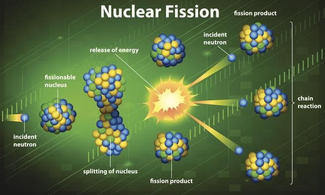La fisión nuclear en forma simple es la división de un núcleo, liberando neutrones y un núcleo más ligero. Al realizar fisión con elementos pesados, el proceso resulta altamente exotérmico (liberación de calor), el cual libera calor, millones de veces más que la quema del carbón.