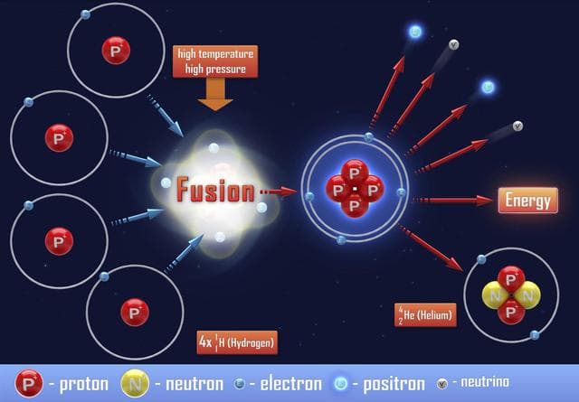 Como su nombre lo indica, la fusión nuclear es la unión de dos núcleos para formar un átomo más grande y pesado, la cual es seguida por una liberación o absorción de energía. Fusionar núcleos con menor masa que la del Hierro libera energía, mientras que fusionar núcleos más pesados provoca una absorción de energía, ocurriendo lo opuesto que en la fisión nuclear.