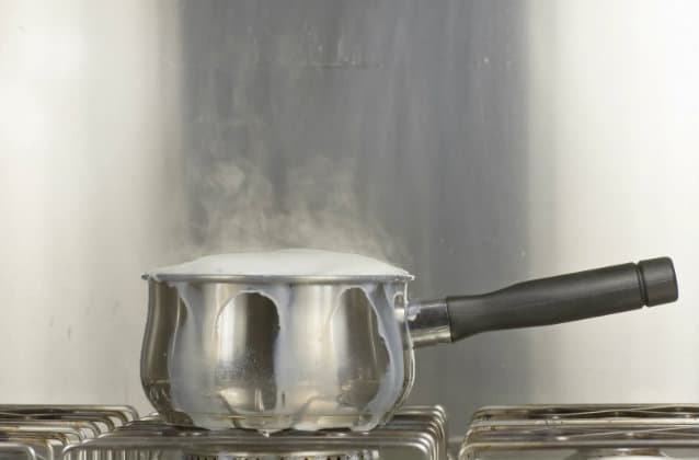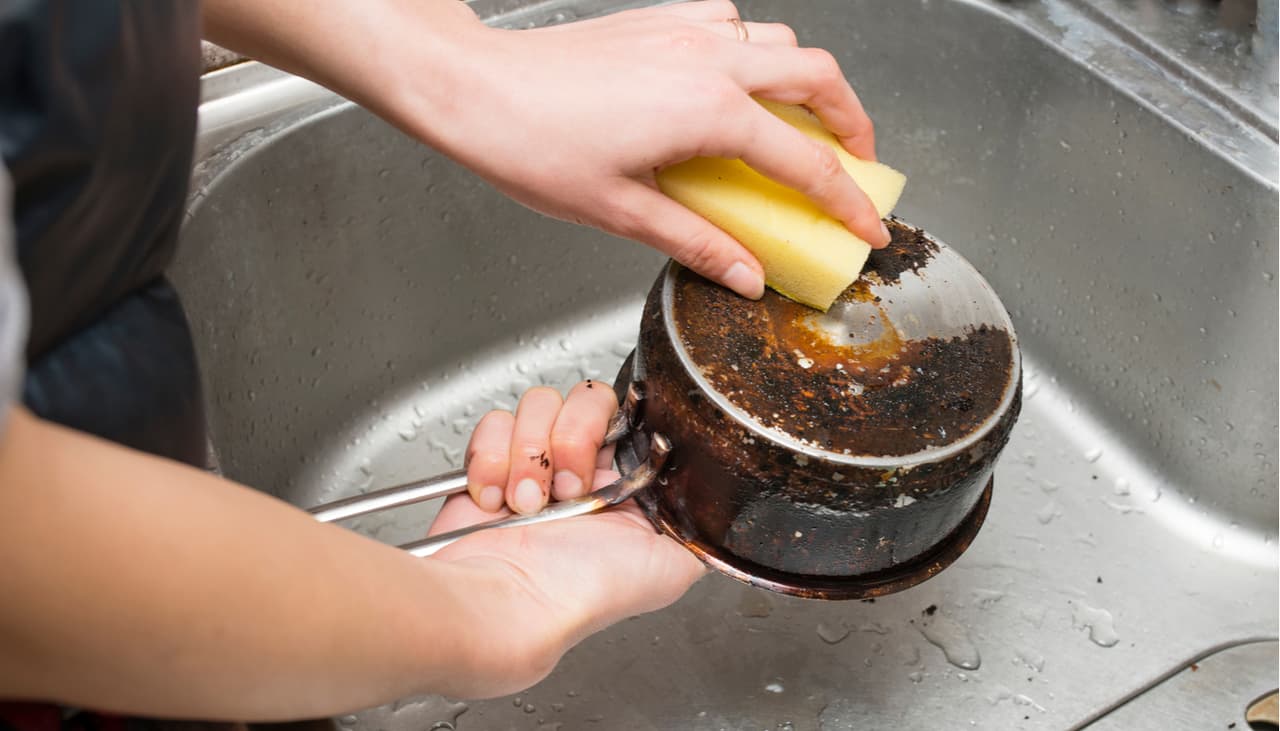 En su lugar, combina ½ taza de vinagre blanco con ½ taza de agua, vierte la mezcla en el utensilio que desees limpiar y calienta a fuego medio durante 5 minutos. Una vez que pase el tiempo establecido, escurre el líquido en el fregadero y enjuaga.