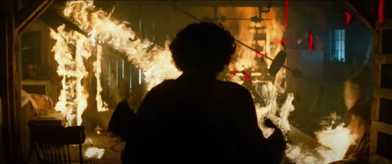 Por lo que muestra el avance, la granja de los Abbott fue incendiada y por eso deben huir de ahí.