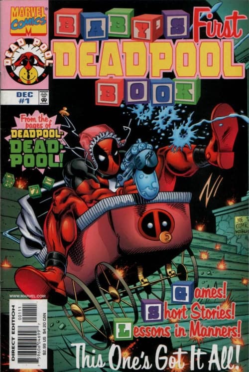 En 1993 en el Libro de Deadpool para hijos primerizos, Deadpool nos enseña que a los vegetarianos hay que obligarlos a comer albóndigas de carne. En el libro se comparan los consejos del Captain America y los de Deadpool para cuidar hijos.