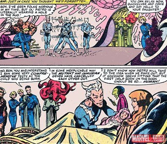 Desde su creación, Quicksilver es un mutante en toda regla, quien ha heredado su Gen X de su padre, Mangeto. Ahora bien, si tomamos en consideración los hechos mencionados anteriormente, y ponemos sobre la mesa lo sucedido en Uncanny Avengers #4 (2015), donde se expresa que ambos son creaciones de High Evolutionary, podríamos asegurar que Quicksilver NO es un mutante.