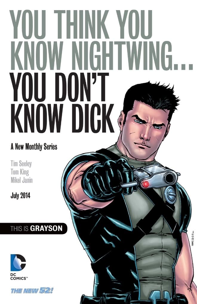 Luego de los eventos de Forever Evil podremos ver a Dick trabajando como agente secreto para los Estados Unidos. La nueva historieta contará con guión del equipo de mentes creativas compuesto por Tim Seeley y Tom King, y con dibujos de Mikel Janín.