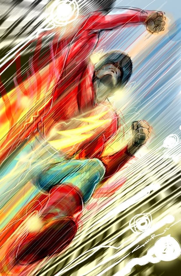 Wally West comenzó su trajín en DC como una suerte de sidekick llamado Kid Flash en 1959. Wally recibió sus poderes de la misma forma que lo hizo su tío, Wally West: un rayo eléctrico y la consecuente caída de productos químicos (estos americanos nunca aprenden a guardar los químicos industriales en su lugar).