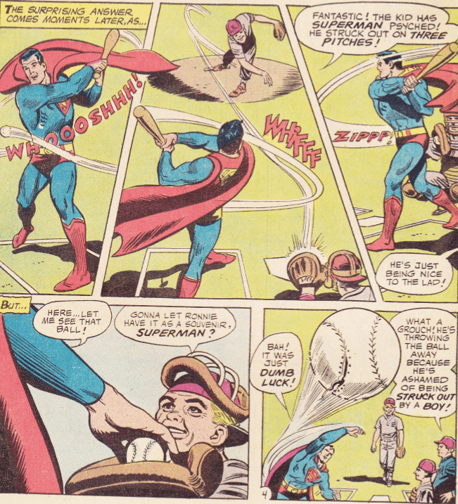 En el cómic inicial de The Mystery Legionnaire!, Superman se involucra en un juego de beisbol juvenil; en todo momento, muy confiado de sus habilidades.