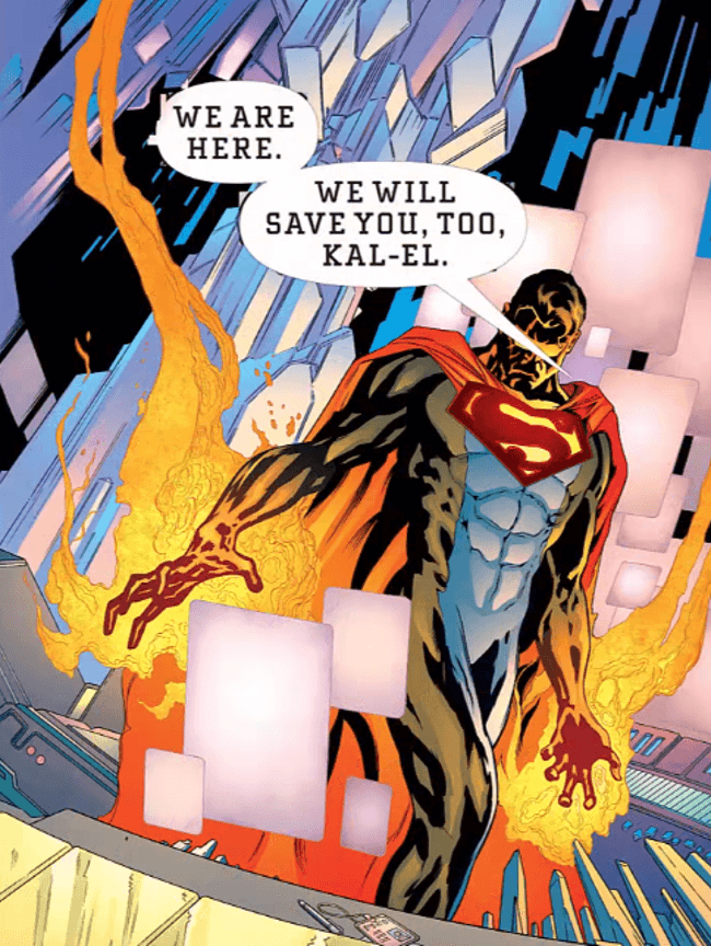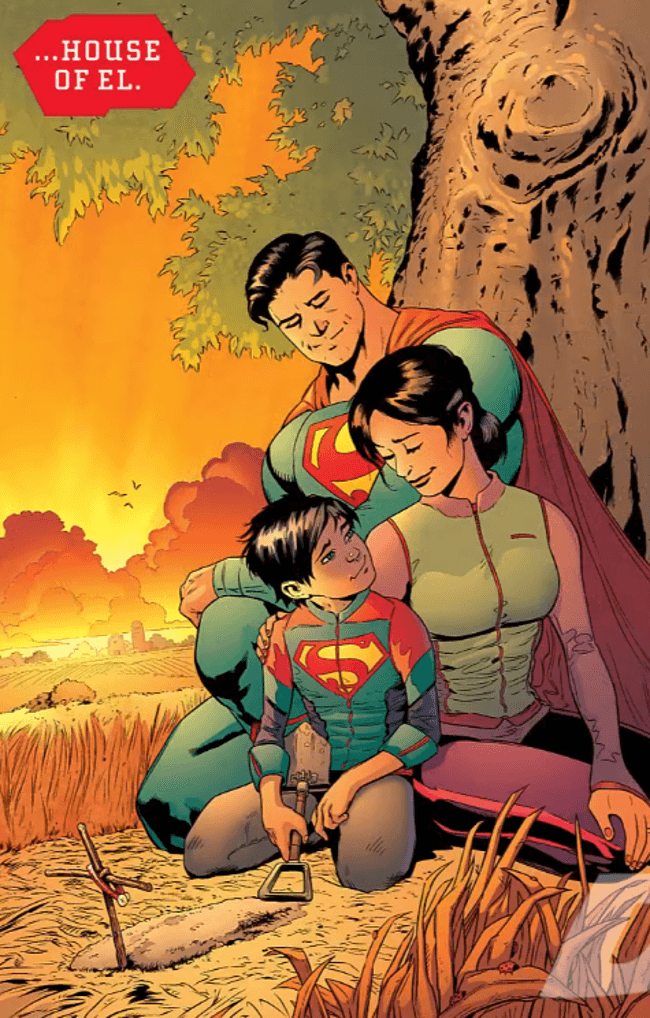 Luego de una de las viñetas familiares más tiernas de los últimos tiempos, algo inesperado sucede: Desde el lugar en donde la batalla ocurrió, "algo" toma una muestra de plasma residual perteneciente a Jon Kent, y luego de analizarla, descubre que pertenece a un híbrido homo-sapiens/kryptoniano. Ese "algo", vuela directamente hacia la " Fortaleza de Soledad", en donde vemos, por primera vez luego de mucho tiempo, a un personaje antiguo.