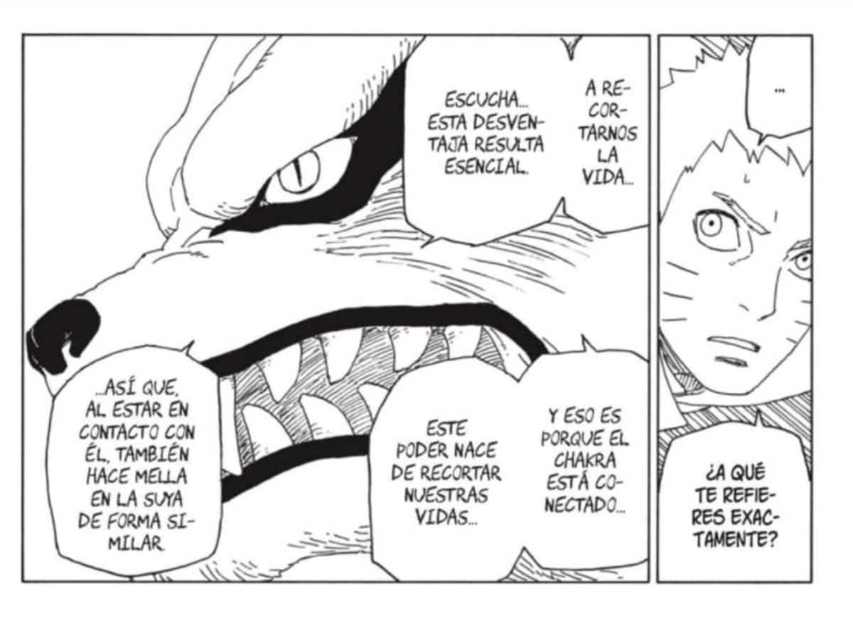Al recortar su propia vida, Naruto y Kurama garantizan recortar también la vida del oponente con el simple hecho de estar en contacto con él.