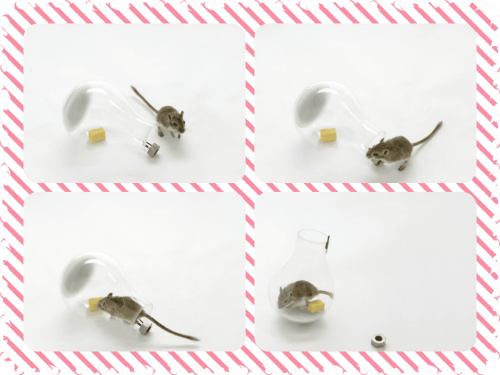 Cuando el ratón llegue a comerse el queso su propio peso hará que la tuerca se salga del clip y el bombillo se enderece, una vez así el ratón no podrá enderezarlo por lo que quedará atrapado hasta el momento en que lo liberemos.