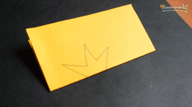 A cualquiera de las tarjetas de Navidad le puedes agregar unas estrellas de botones. Mira qué fácil es hacerlas: primero dobla a la mitad un papel de color amarillo y haz un dibujo con tres puntas, así: