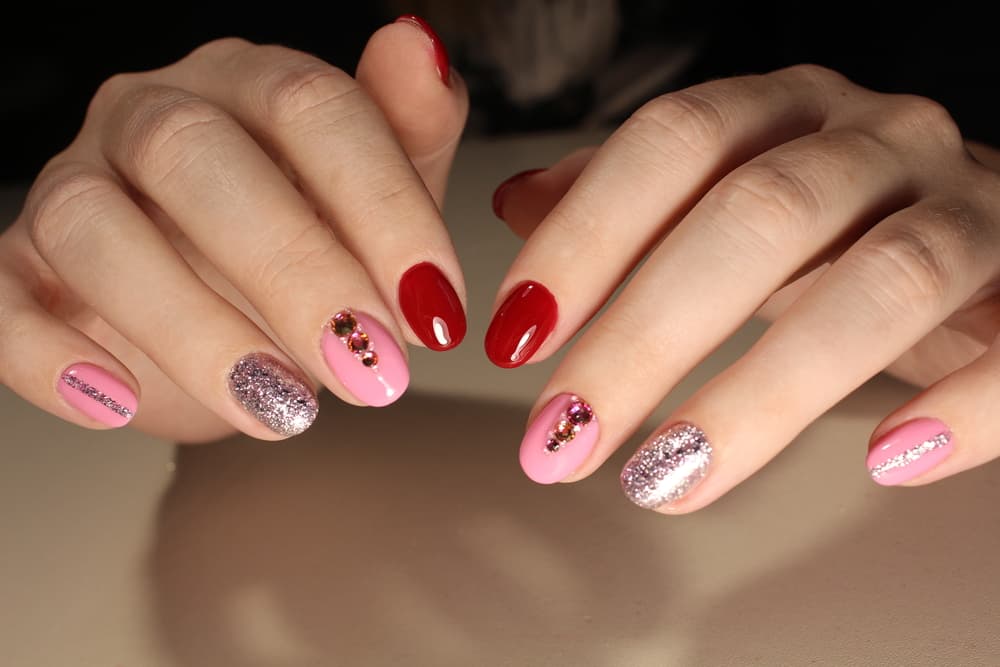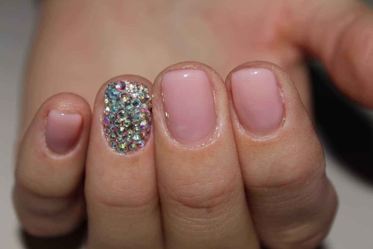 Las uñas en tonos rosados siguen siendo las más populares y agregarles unos cuantos brillos se vale. La siguiente alternativa es ideal para una fiesta donde quieres brillar más que nunca.
