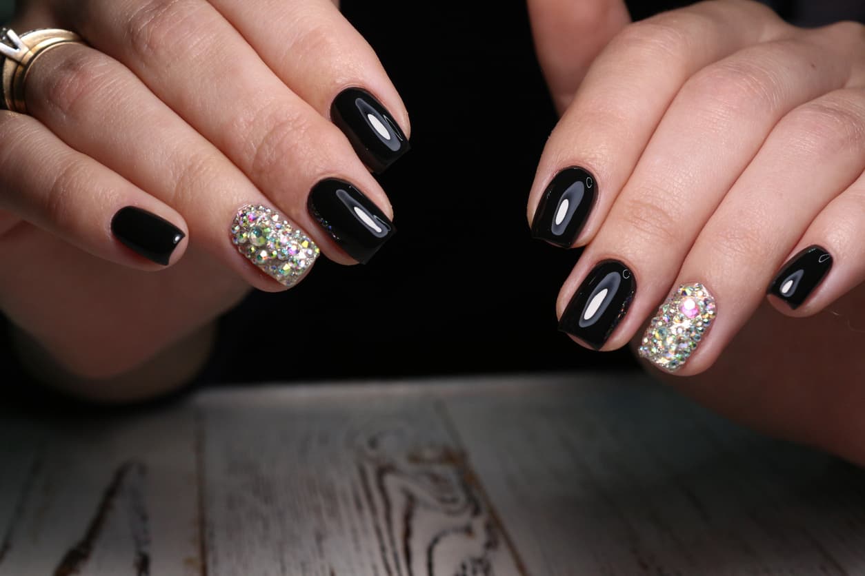 #7 Diseño de uñas negro con brillos