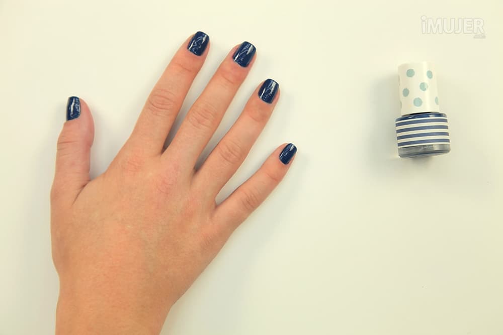 En primer lugar, pinta tus uñas con esmalte del color que quieras. Este será color de fondo de la decoración. Nosotras hemos elegido el azul porque luego usaremos naranja y amarillo para las florcitas, y las va a destacar muy bien.