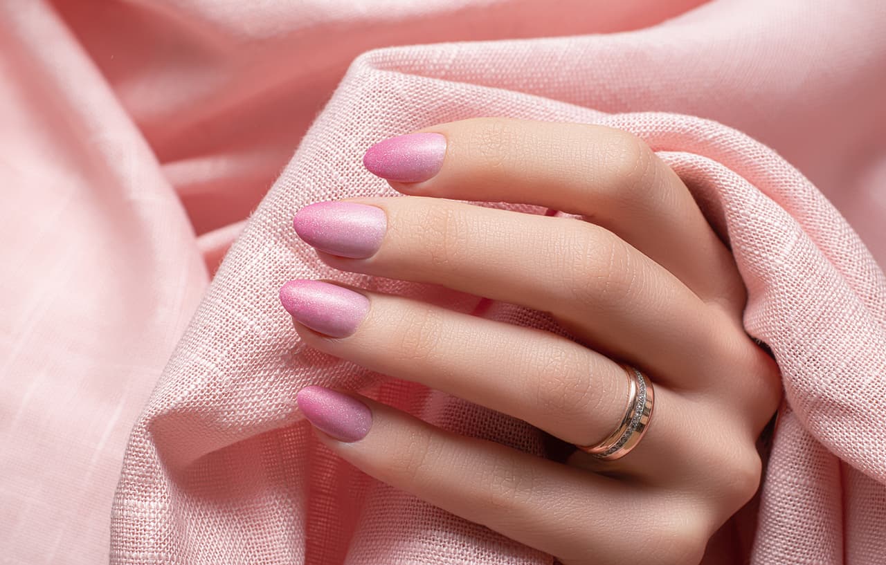 El color rosa se ve bello con cualquier prenda, por eso lo verás en varias de estas recomendaciones. El siguiente estilo es una combinación del efecto espejo con la técnica tornasol.