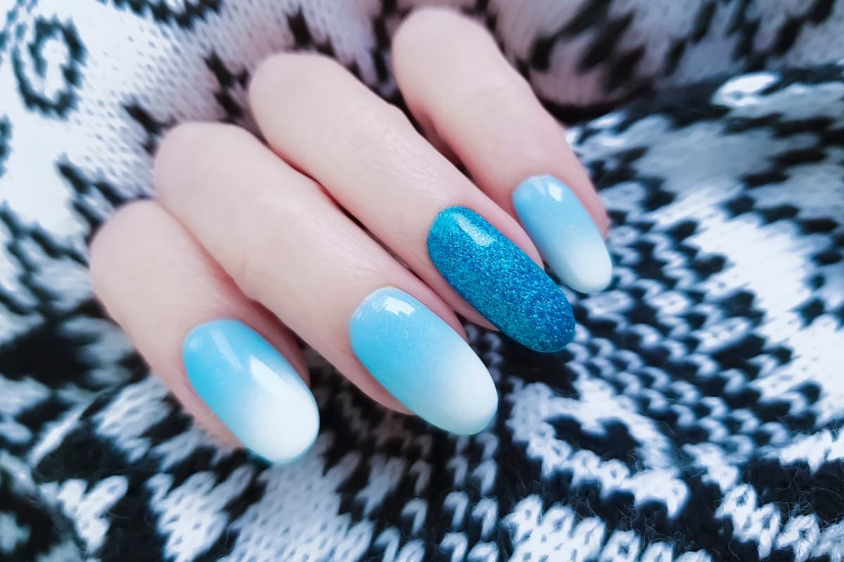 Siguiendo con los estilos sutiles y tiernos, esta es la alternativa más dulce de la lista. Se trata de un azul claro que hace que tus manos se vean sofisticadas. Recuerda que el efecto aurora también se ve bien en uñas cortas.