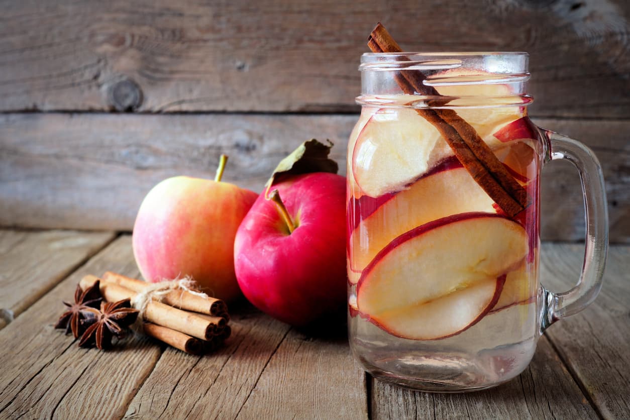 Corta la manzana en dos partes iguales y coloca cada mitad en un recipiente de vidrio (puedes partirla en pedazos más pequeños para que quepa). Ahora añade los pétalos de ambas rosas en los dos contenedores (mitad y mitad).