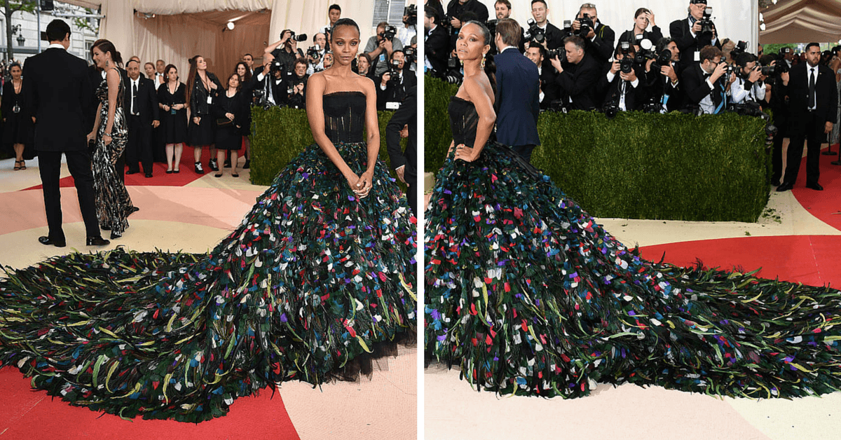 La talentosa actriz de ascendencia puertorriqueña y dominicana, Zoe Saldana, nos ha regalado en varias ocasiones un gran deleite con sus atuendos en la alfombra roja. Como cuando lució como toda una princesa con un Dolce & Gabbana, en el Met Gala de 2016.