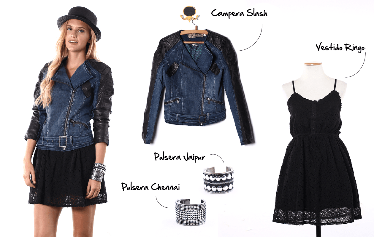 El vestido de encaje Ringo con breteles finos es una alternativa para completar este look de una forma muy sensual. Por último, no podían faltar las pulseras tipo brazalete Jaipur y Chennai, que parecieran haber sido creadas para estar juntas. Animate con accesorios grandes y metálicos para darle un toque especial a tu outfit.