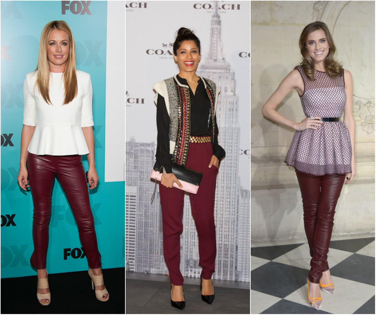Los pantalones borgoña van muy bien con chaquetas blancas, pero si deseas usar una negra, intenta que sea una chaqueta de cuero, ya que estas le dan ese toque chic al hacer un buen contraste de texturas.
