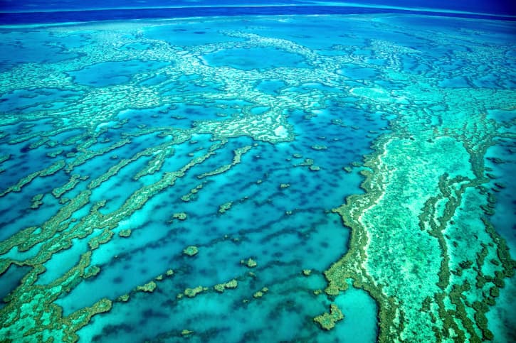 La Gran Barrera de Coral, el ecosistema más grande del visto y el único visible desde el espacio.
