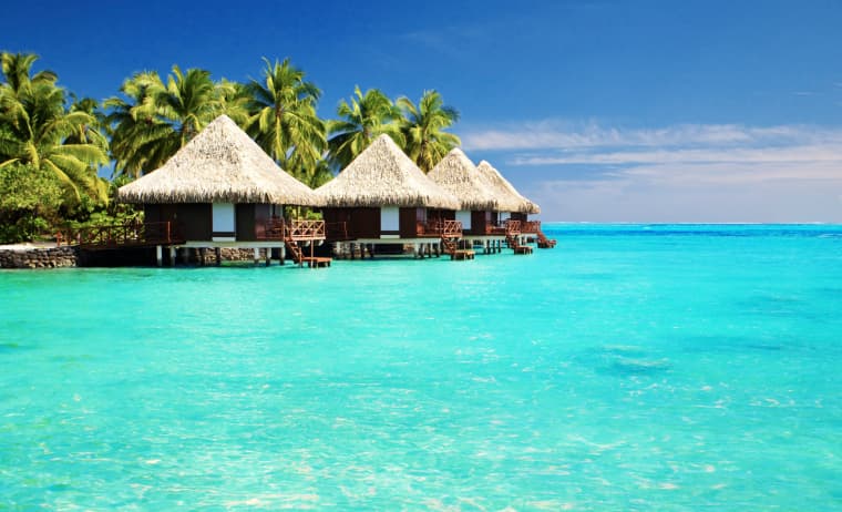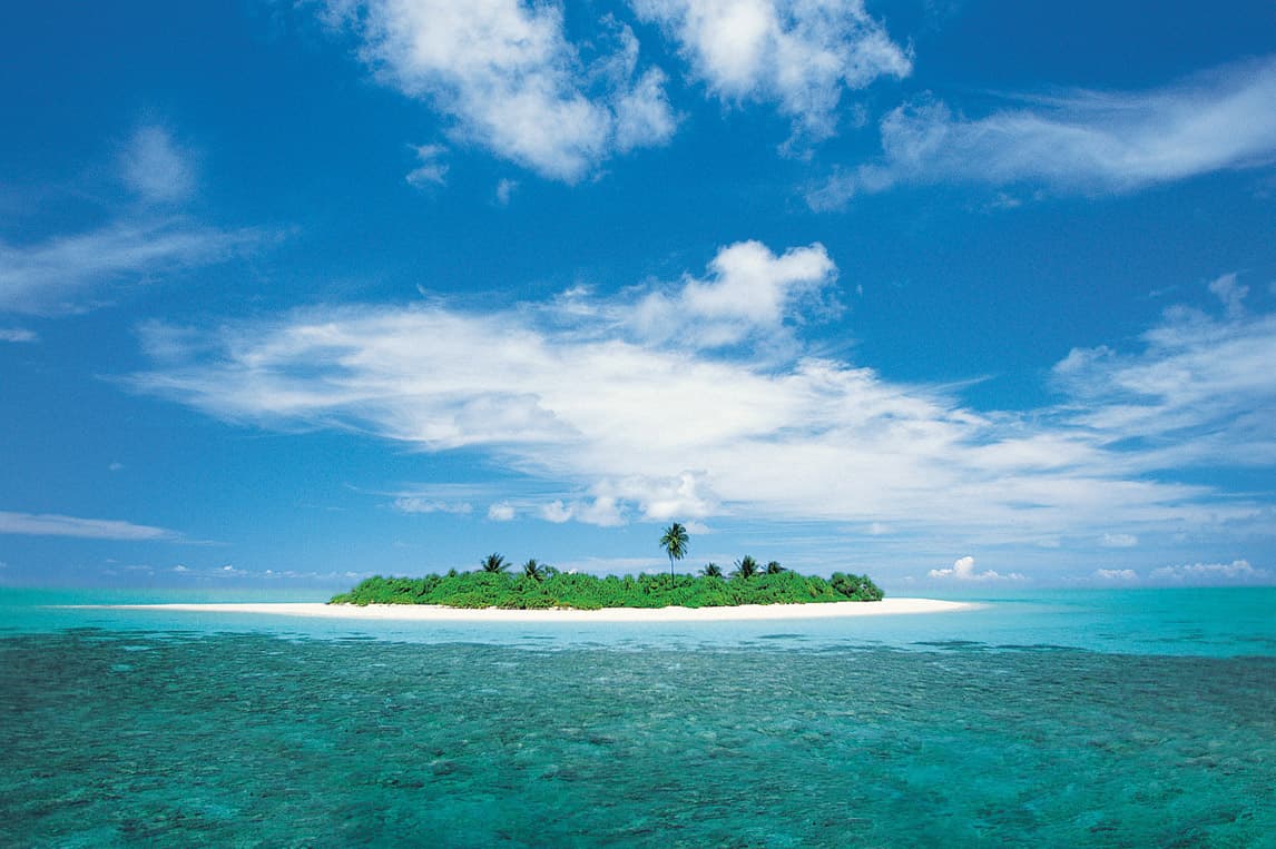 Vista desde la lejanía de una de las islas de las Maldivas, paraíso ideal si estás pensando en un destino para tu luna de miel.