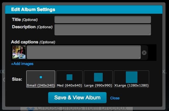 Entre las cosas que puedes hacer está cambiar su tamaño, añadirles texto y guardarlas en un álbum, el que luego podrás compartir a través de un enlace que el propio servicio te entrega.