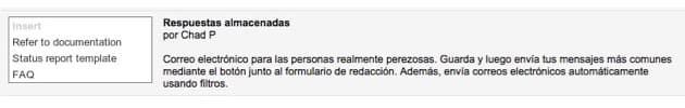 Mediante Respuestas Almacenadas, puedes crear respuestas tipo para tus correos, las que se añaden con sólo seleccionarlas, evitando lo tedioso que puede ser redactar algo similar todo el tiempo.