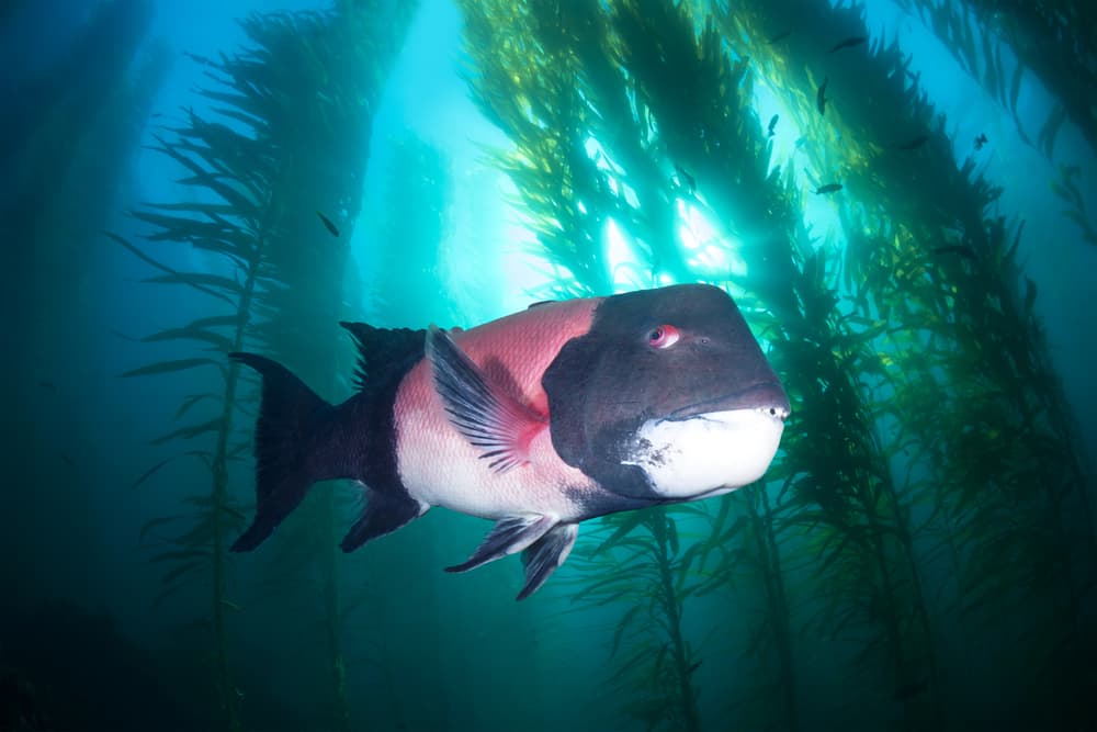 El pez cabeza de oveja de California ( SemicoSyphus pulcher) utiliza rocas para aplastar a las presas abiertas como los erizos o las almejas, a pesar de no tener ninguna extremidad que los ayude en la tarea.