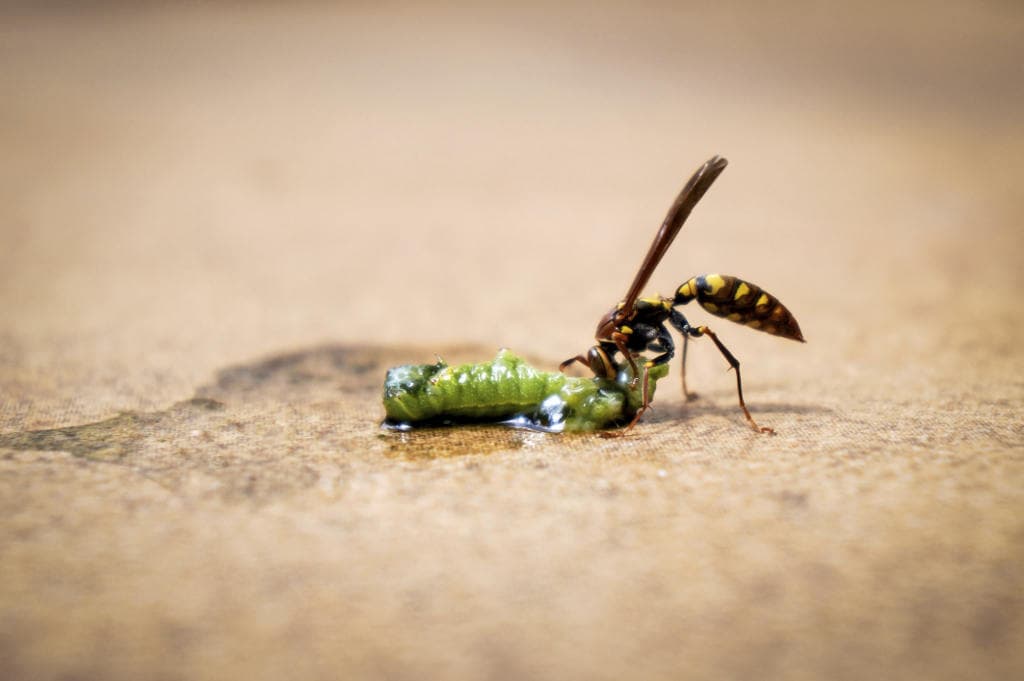 Algunas especies de avispas ponen sus huevos en el interior del cuerpo de otras especies de insectos y, cuando nace la larva, esta se alimenta de los tejidos vivos del mismo hasta que lo mata irremediablemente.